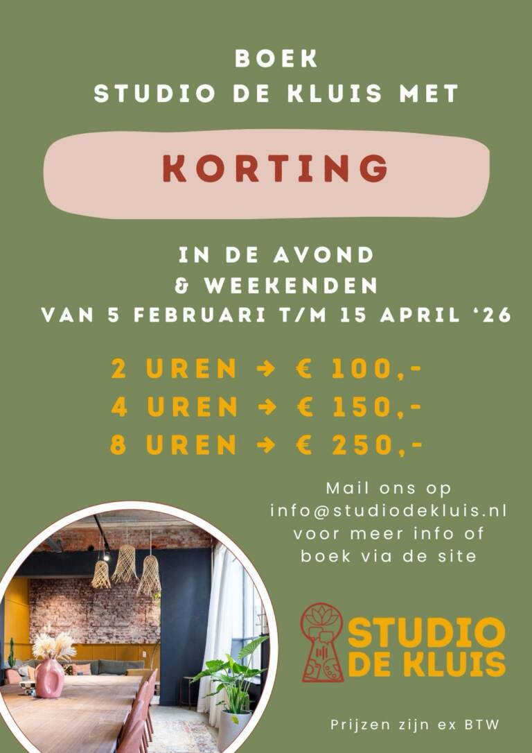 Welkom bij Studio De Kluis in Burgum, Friesland. Een unieke ruimte die je kunt huren voor alles wat vraagt om creativiteit, concentratie of verbinding. Hier geen kille vergaderzaal of kleurloze studio, maar een warme plek vol karakter waar je je meteen thuis voelt.